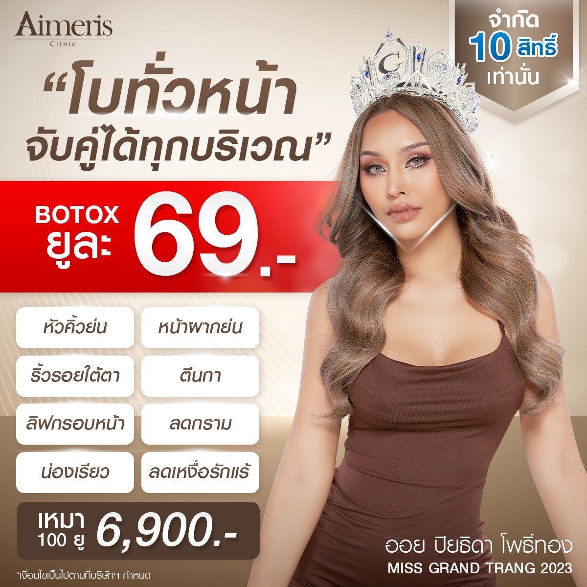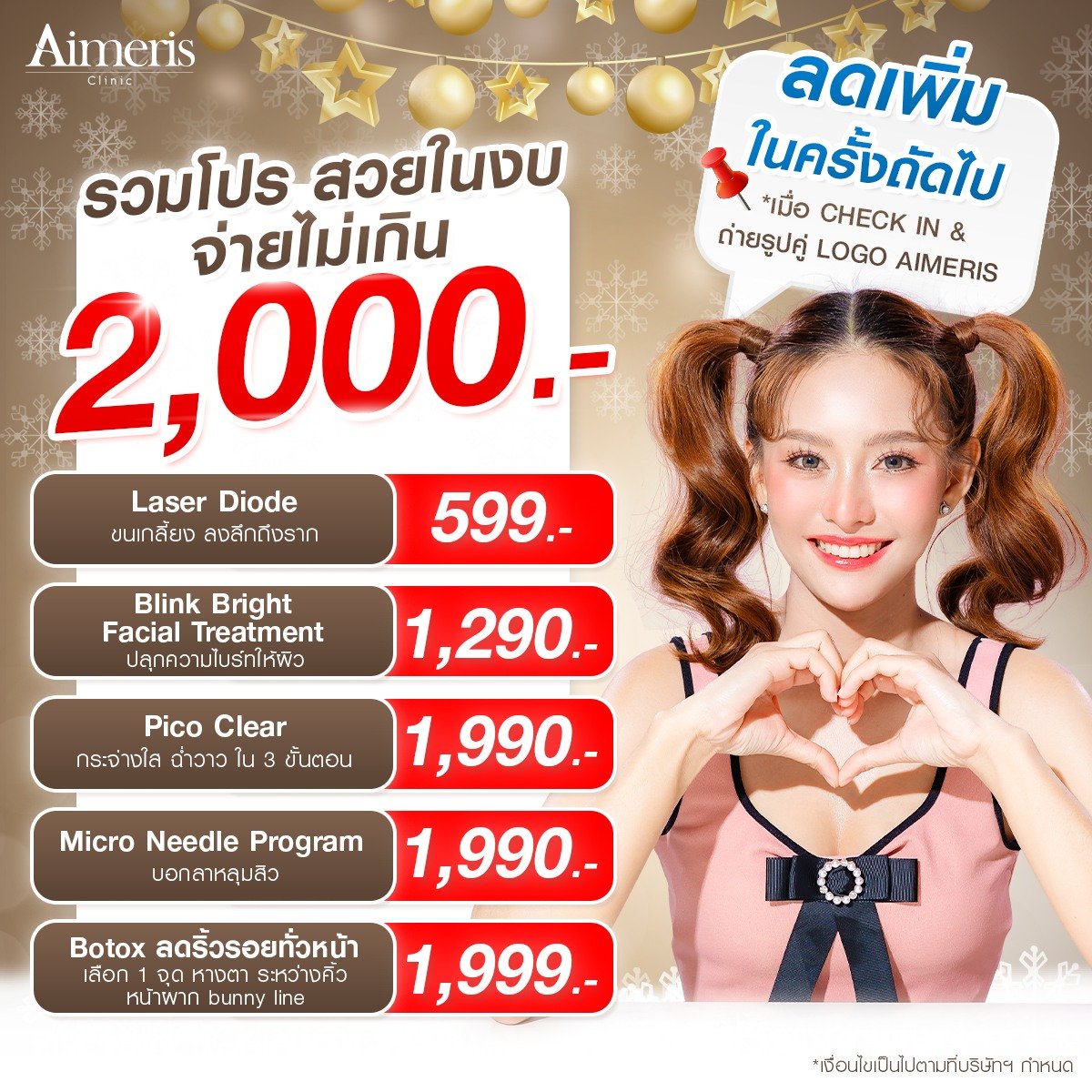 Aimeris Clinic คลินิกเวชกรรมที่ได้มาตรฐานสากลอันดับ 1 สะอาด ปลอดภัย 100% เราโดดเด่นในเรื่องของการดูแลความสวย ความงามชะลอวัยเลเซอร์ ศัลยกรรมแบบครบวงจร ไม่ว่าจะเป็น โบท็อกซ์ ฟิลเลอร์ ร้อยไหม การทำ HIFU วิตามินผิวต่าง ๆ นอกจากนี้ยังมีบริการเกี่ยวกับการปรับรูปหน้า การดูแลเรื่องผิวพรรณ จุดด่างดำ ฝ้า กระ รอยสิว และเติมวิตามินให้ผิวกระจ่างใส สุขภาพดี