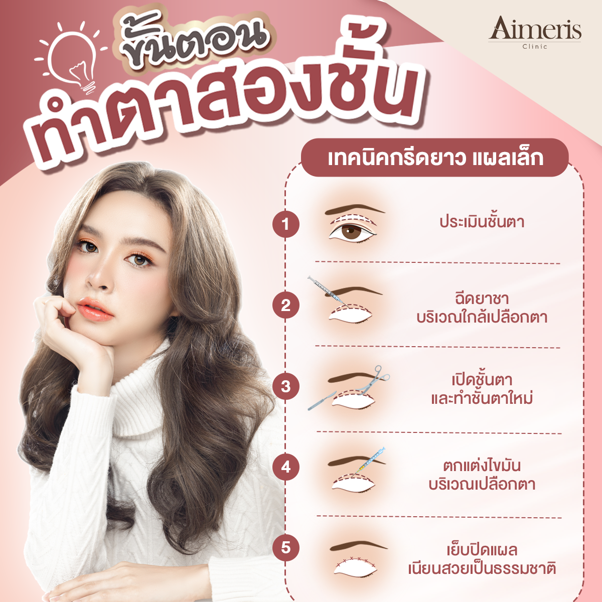 เทคนิคนี้จะช่วยทำให้ตาดูคมชัด มีความธรรมชาติ และเหมาะสำหรับคนที่มีตาชั้นเดียว ตาเล็ก หรือมีชั้นตาที่หลบใน เนื้อเปลือกตาน้อย จะทำให้ได้ผลลัพธ์ที่ดี