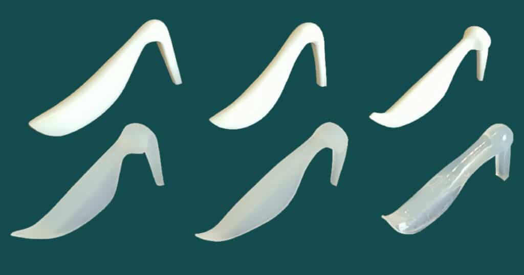 ซิลิโคนแบบสำเร็จรูป เป็นซิลิโคนที่ได้การขึ้นรูปไว้เรียบร้อย ทำให้มีโอกาสเบี้ยวหรือเอียงน้อย ซิลิโคนชนิดนี้จะมีหลากหลายทรง โดยจะเรียกชื่อตามลักษณะทรงจมูก เช่น ซิลิโคนแมนทิส, ซิลิโคนบาร์บี้, ซิลิโคนซินเดอเรลล่า, ซิลิโคนแบบ L-shape การใช้ซิลิโคนสำเร็จรูปเสริมจมูกอาจจะไม่ได้เหมาะกับทุกคน เพราะมีรูปทรงที่ไม่สามารถปรับแก้ได้ สำหรับคนที่มีปัญหาจมูกที่ซับซ้อน